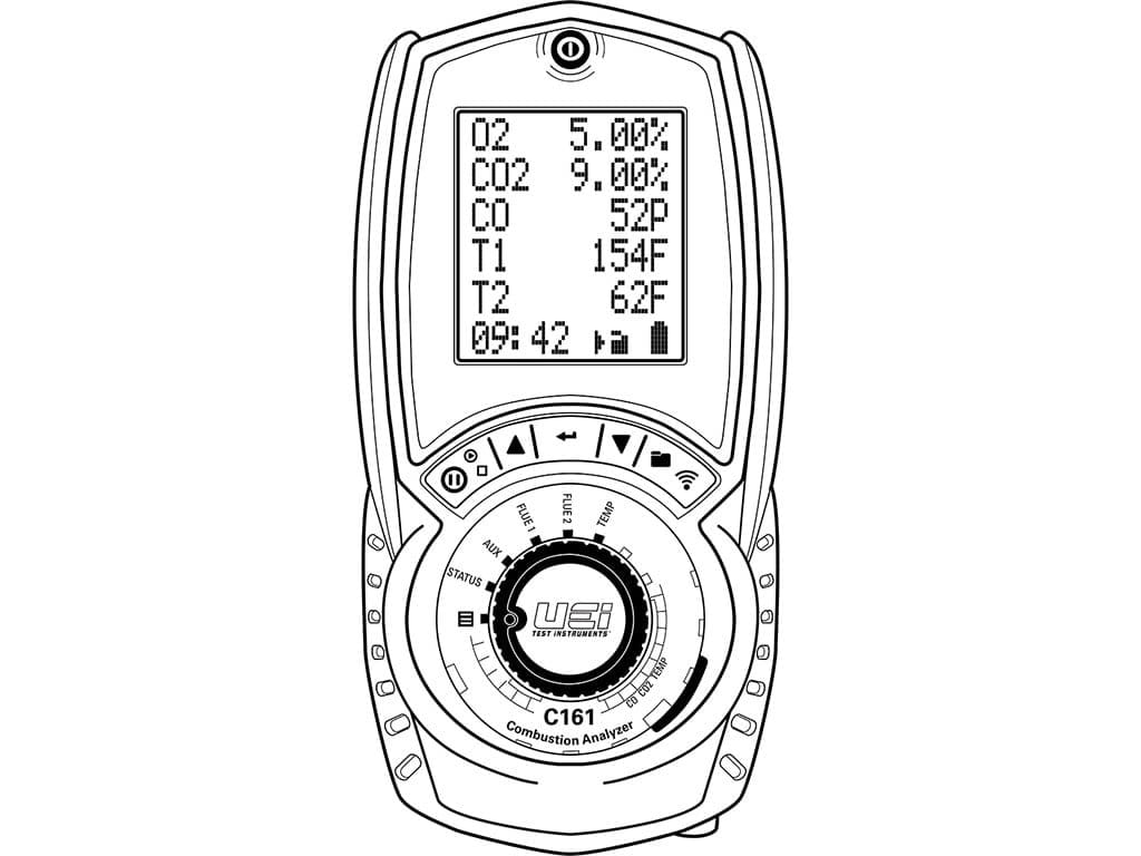 Backed by UEi Service+ to give up to a 10-year warranty, next-day recertification, and a reduced cost of ownership. The C161 Residential Combustion Analyzer is easy to use with a rugged design, multiple sensor protections, altitude compensation, and now adds a heat exchanger test. Prints to an optional printer. Essential information for installing and maintaining furnaces and boilers all in one device.